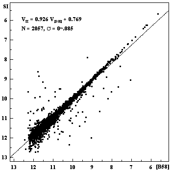 Comparison of the V magnitude between B-1958 catalogue and SIMBAD.