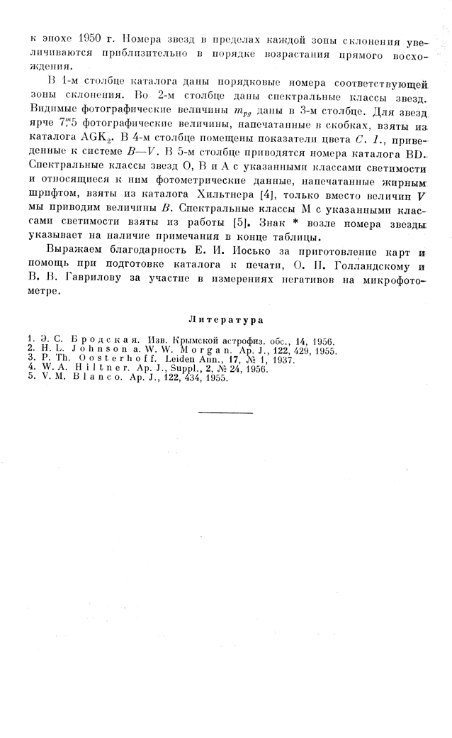 1. 1955IzKry..14....3B E.S. Brodskaya. IzKry, 14, 1955. 2. 1955ApJ..122...429J H.L. Johnson a. W.W. Morgan. Ap. J., 122, 429, 1955. 3. 1937AnLei..17A...1O P.Th. Oosterhoff. Leiden Ann., 17, N 1, 1937. 4. 1956ApJS....2..389H W.A. Hiltner. Ap. J. Suppl., 2, N 24, 1956. 5. 1955ApJ..122...434B V.M. Blanco. Ap. J., 122, 434, 1955.